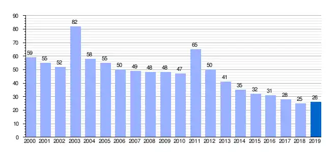 | Gráfica de evolución demográfica de Barcina de los Montes entre 2000 y 2019 |