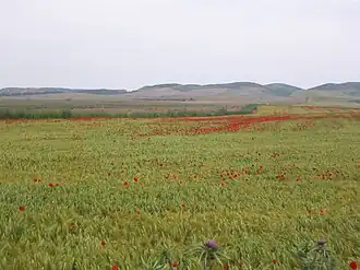 Se extiende a los pies del cerro de la Virgen de Nuestra Señora del Yugo al oeste de la Bardena Blanca. Es una zona de contraste entre los cultivos de regadío y secano.