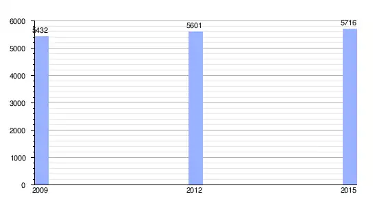 | Gráfica de evolución demográfica de Bariadelle entre 2009 y 2015 |
