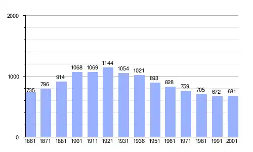 | Gráfica de evolución demográfica de Barolo entre 1861 y 2001 |