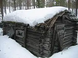 La construcción de una cabaña es generalmente menos compleja que la de una casa (vivienda duradera y bien construida) pero más que la de un refugio (lugar de refugio o seguridad) como una tienda de campaña y se utiliza como refugio temporal o estacional o como vivienda permanente en algunas sociedades indígenas.[4]