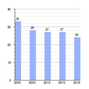 | Gráfica de evolución demográfica de Atrio[2] entre 2000 y 2018 |