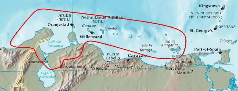 - Estado Falcón (gran parte del territorio incluyendo la península de Paraguaná)