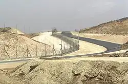 La Barrera israelí de Cisjordania es una barrera aún no finalizada y construida por el Gobierno de Israel, que en parte está formada por un muro de hormigón en las zonas pobladas y por un sistema de vallas en las zonas rurales.[1] Se extiende aproximadamente en un 20 % a lo largo de la Línea Verde y el 80 % restante en territorio cisjordano,[2][3][4] adentrándose en el mismo hasta 22 kilómetros en algunos lugares,[5] con el fin de incluir asentamientos israelíes densamente poblados, como Ariel, Gush Etzion, Immanuel, Karnei Shomron, Guiv'at Ze'ev, Oranit y Maale Adumim.[6][7] Cuando esté terminada, el 10 % del territorio cisjordano aproximadamente quedará en el lado israelí de la barrera y será aislado del resto de Cisjordania.[8][9] El proyecto final estima su longitud total en 721 kilómetros (junio de 2006).[10]
