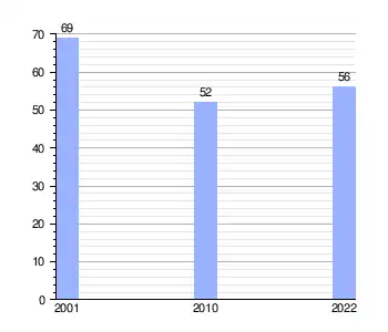 El censo 2022 registró una población de 56 habitantes que se repartieron entre 28 hombres y 28 mujeres. Sin embargo, las cifras obtenidas fueron estimativas solo teniendo en cuenta a la población en viviendas particulares; es decir, excluyendo del dato a la población institucional y las personas sin hogar. Gracias a este censo también fue posible conocer su densidad y tamaño urbano.[2]