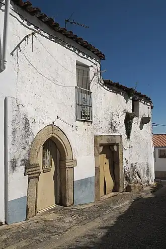 Las casas conforman todo un barrio de perfil arriñonado, de calles estrechas y largas que habría que poner en relación con el vecino pueblo portugués de Castelo de Vide. El color de la piedra y de la cal dan uniformidad ambiental y el trazado de sus calles recuerda al del medievo. Las casas no son nobiliarias ni es una arquitectura civil culta, sino totalmente sencilla y popular. Si se compara este conjunto con el resto de Extremadura se encuentra que, si bien existe algún ejemplo de construcción semejante, no la hay de calles o barrios enteros como éste que puedan circunscribirse a un urbanismo medieval y a una etapa cronológica determinada.[1]
