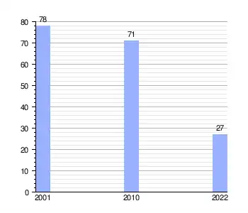 El censo 2022 registró una población de 27 habitantes que se repartieron entre 1845 hombres y 1812 mujeres. Sin embargo, las cifras obtenidas fueron estimativas solo teniendo en cuenta a la población en viviendas particulares; es decir, excluyendo del dato a la población institucional y las personas sin hogar. Gracias a este censo también fue posible conocer su densidad y tamaño urbano.[2]