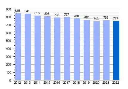 | Gráfica de evolución demográfica de Barrio Nuevo entre 2012 y 2022 |