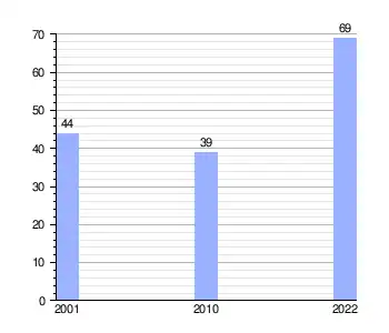 El censo 2022 registró una población de 69 habitantes que se repartieron entre 37 hombres y 32 mujeres. Sin embargo, las cifras obtenidas fueron estimativas solo teniendo en cuenta a la población en viviendas particulares; es decir, excluyendo del dato a la población institucional y las personas sin hogar. Gracias a este censo también fue posible conocer su densidad y tamaño urbano.[2]