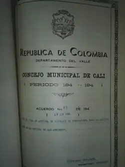 - ↑ Concejo Municipal de Cali, Acuerdo Nº 98 de 1944, Compra de la «Colina de San Antonio» por parte del Municipio, en el Archivo Histórico de la Ciudad.