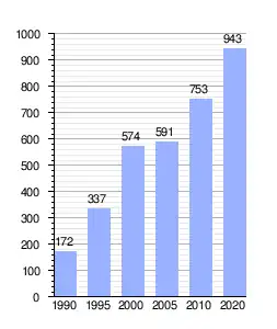 | Gráfica de evolución demográfica de Barrio de Españita entre 1990 y 2020 |
