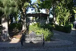 En lo que respecta a su estructura, al centro del jardín se dispuso un quiosco de planta octagonal, construido a base de herrería. Actualmente posee, además del quiosco, una explanada con fresnos y álamos.[4]