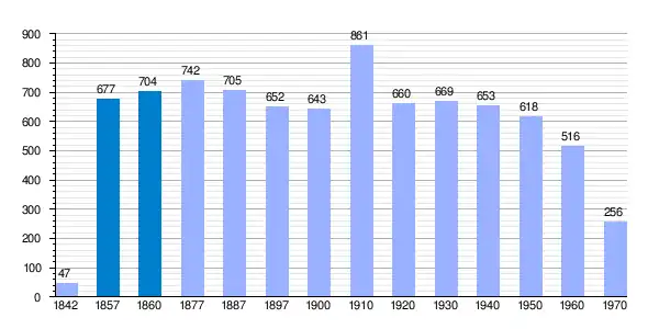 | Gráfica de evolución demográfica de Barrio de San Pedro[3] entre 1842 y 1970 |