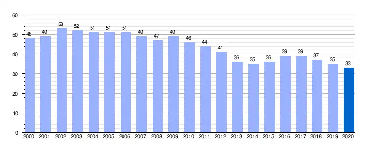 | Gráfica de evolución demográfica de Barrio de Santa María entre 2000 y 2020 |