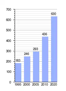 | Gráfica de evolución demográfica de Barrio del Judío entre 1995 y 2020 |