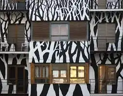 Asimismo, han sido objeto de sus obras otros elementos del barrio como las fachadas de los edificios, uno de los más destacados se sitúa en la calle Wences Moreno nº 13 intervenido por Pablo S. Herrero el cual ha decorado dicha fachada con un bosque en blanco y negro que asciende a lo largo de todo el bloque del edificio.
