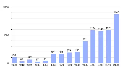 | Gráfica de evolución demográfica de Barrio la Camelia entre 1900 y 2020 |