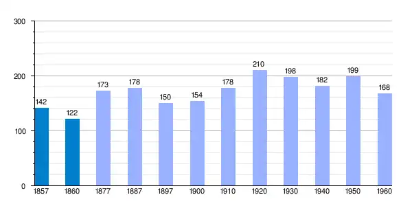 | Gráfica de evolución demográfica de Barriomartín[4] entre 1857 y 1960 |