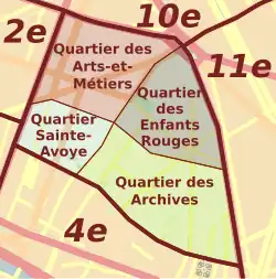 | 12.º | Sainte-Avoye | 7501 | 21,3 | 35 216 | ||