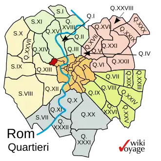 | Q. XI | Portuense | Q. XII | Gianicolense | Q. XIII | Aurelio | Q. XIV | Trionfale | Q. XV | Della Vittoria |
