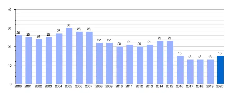 | Gráfica de evolución demográfica de Barriosuso entre 2000 y 2020 |