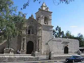 En Arequipa el edificio clave de la arquitectura mestiza es la iglesia de la Compañía, edificio obra del arquitecto Gaspar Báez levantado en 1578 y terminado de construir y restaurar en 1698.