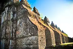En las Indias Orientales españolas, la destrucción de iglesias anteriores a causa de frecuentes terremotos provocó que la proporción de los edificios fuera menor y más amplia. Así, las paredes laterales se hicieron más gruesas y se reforzadas para mayor estabilidad durante los sismos. Las estructuras superiores se construyeron con materiales más ligeros.[2] Para disminuir su peso se introdujeron paredes más delgadas, que disminuían progresivamente su espesor hasta los niveles más altos.[3]