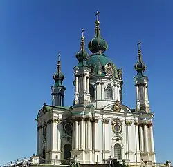 Iglesia de San Andrés de Kiev (1747-1754), obra de Ivan Fyodorovich Michurin según planos de Bartolomeo Rastrelli.