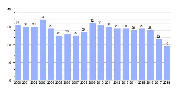 | Gráfica de evolución demográfica de Barros entre 2000 y 2018 |
