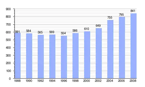 | Total | 610 | 779 | 910 | 905 | 883 | |