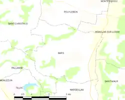 Bars es una población y comuna francesa, ubicada en la región de Mediodía-Pirineos, departamento de Gers, en el distrito de Mirande y cantón de Montesquiou.