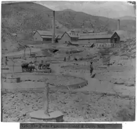 - Repasos. Trilla con los pies (en los últimos tiempos coloniales, se utilizaron caballerías) de los montones extendidos en el patio formando tortas; primero solo unas veces por día; luego, mayor número, y todo el tiempo que se considere necesario para que el azogue absorba la máxima cantidad de plata, de acuerdo con un previo ensayo menor, de la riqueza de la llena, y de las tentaduras que se realizan durante los repasos. Estos duran desde unas semanas a 2 o 3 meses, según la naturaleza de la mena, el clima y las circunstancias sean o no favorables.