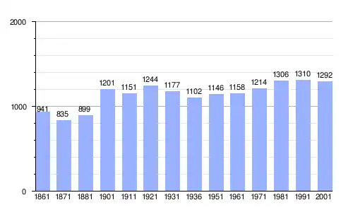 | Gráfica de evolución demográfica de Barzio entre 1861 y 2001 |