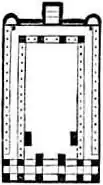 En el interior, dos filas de columnas de ladrillo revestidas de estuco, más una tercera en la parte posterior, dividen la basílica en tres naves:[3] una central, más grande y pavimentada en mármol, y dos laterales más estrechas, pavimentadas en opus sectile con mármoles policromados y con paredes decoradas por arcos y pilastras en las que se abren hornacinas, donde se han encontrado varias estatuas, entre ellas las de Livia Drusila, Agripina, Germánico Julio César y la familia de Marco Balbo;[5] la cornisa sobre el pórtico tiene decoraciones de estuco del cuarto estilo con representaciones de leones, delfines y luchas eróticas.[3] En la parte posterior del edificio hay tres ábsides: una central rectangular en correspondencia con la nave principal, con frescos que representan a Heracles reconociendo a Télefo y a Teseo victorioso sobre el Minotauro, y dos naves laterales con frescos que representan a Aquiles y Quirón y a Marsias y el Olimpo.[7] Delante de la exedra central se encontró un grupo de estatuas de Augusto, Claudio y Tito con una armadura decorada con elefantes, y delante de las exedras laterales, estatuas de bronce de Augusto y Claudio;[3] tanto los frescos como las estatuas, todas con inscripciones con el nombre del personaje representado, así como diversos epígrafes, se conservan en el Museo Arqueológico Nacional de Nápoles.[4]