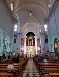 La basílica tiene planta de cruz latina con tres naves, siendo la del centro la más amplia; en la parte alta del presbiterio se encuentra el camarín donde se venera la devota imagen de Nuestro Padre Jesús de Medinaceli. Su fachada es el elemento más característico, con reminiscencias del estilo barroco; posee un ventanal central en forma de serliana, rematándose el conjunto por un frontón triangular partido.