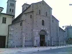 Esa basílica sirvió de sede a la cátedra episcopal desde 1013, cuando el obispo Alberico —entonces canciller del emperador Enrique II—, trasladó la sede al interior de los muros de la ciudad, hasta el 1017. Luego, el edificio fue confiado a monjes benedictinos, quienes entre el año 1050 y 1095, reedificaron la iglesia con un estilo románico, con cinco naves y la dedicaron al sucesor de Amancio. Esto sucedió el 13 de junio de 1095 cuando el papa Urbano II consagró la nueva basílica.