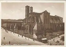 ![]() Fachada en la plaza de San Francisco (Bolonia) Fachada en la plaza homónima | ||