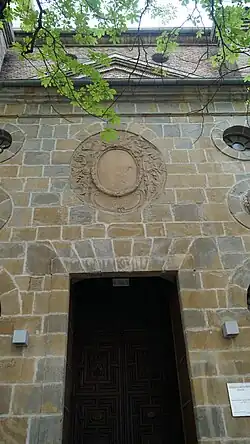 Se muestra sobre una puerta de acceso y un ventanal a cada lado de la puerta. Encima se observa un decorativo óvalo central realizado por Juan Miguel Goyenete en 1743 que debía contener en la parte central el monograma IHS. A modo de leyenda, se lee en latín el inicio del pasaje evangélico: