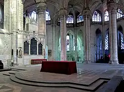 Al este del transepto principal hay cuatro tramos rectos de coro y luego un segundo crucero, más estrecho. La estructura curvada del extremo oriental se extiende desde este transepto. El conjunto de coro y cabecera fue construido probablemente entre alrededor de 1220 y 1257. La planta de doble transepto se encuentra en la iglesia de la abadía de Cluny de 1088, pero por lo demás es muy inusual en Francia. El concepto parece haber llegado desde Inglaterra, donde era popular en ese momento.[12] La rama sur del pequeño transepto estaba casi en ruinas en 1460, y fue completamente reconstruida por Colard Noël en estilo gótico flamígero. La rama norte es sobre todo la edificación original del siglo XIII, aunque las ventanas fueron remodeladas en el siglo XV.[7]