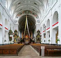 La basílica actual fue diseñada en estilo neobarroco por Johann Baptist Schott inspirada en la iglesia conventual de Fürstenfeld. La construcción fue financiada con donaciones de Baviera. Las obras tomaron dos años y medio y se terminó el 13 de octubre de 1912, siendo consagrada por el obispo de Passau Sigismund Felix von Ow-Felldorf.