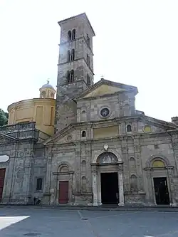 La iglesia fue consagrada por el papa Gregorio VII en 1077. La fachada fue encargada por el papa León X y se completó de 1492 a 1494 con diseños de Francesco y Benedetto Buglioni. Las dos entradas tienen lunetas policromadas de los artistas florentinos, al estilo de Della Robbia. A la izquierda de la fachada se encuentra la entrada exterior del rococó tardío a la Capilla del Milagro. El alto campanario del siglo XIII tiene ventanas de estilo románico.