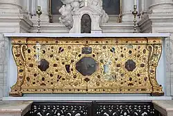 El exterior destaca por la riqueza de las fachadas, adelantadas respecto a la iglesia y con interesantes juegos de claroscuro formados por sus entrantes y salientes. También son llamativas las enormes volutas que parecen sostener la cúpula.