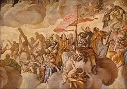 Acabado este trabajo, Palomino diseñó el programa pictórico de la cúpula de la Iglesia de San Nicolás, pero dejó el trabajo manual a uno de sus colaboradores, el valenciano Dionís Vidal.