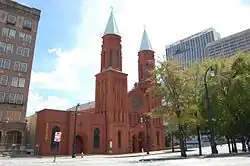El templo sigue el rito romano y el actual edificio data de 1880 y fue realizada con el diseño del arquitecto nativo de Atlanta Walter T. Downing en el estilo de la arquitectura románica con varias modificaciones posteriores.