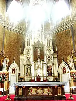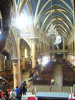El estilo gótico francés destaca por sus arcos de medio punto e interior barroco, con vitrales monumentales y torres del estilo flamígero asimilándose a llamas de fuego. El interior presenta pisos de mármol y baldosas coloreadas con bóvedas de Crucería azules y columnas redondas con capiteles dóricos. Aun siendo de estilo gótico, la basílica carece de triforio o tribunas, propias de dicho estilo. El transepto de estilo francés (no sobresale de la nave central), está rematado en el crucero por una aguja.