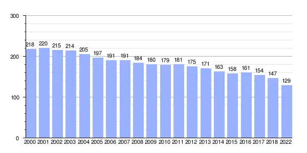 | Gráfica de evolución demográfica de Bascoy[3] entre 2000 y 2022 |