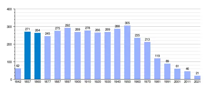 Población de derecho según los censos de población del INE Población de hecho según los censos de población del INEEntre el censo de 1857 y el anterior, crece el término del municipio porque incorpora a San Pedro del Monte.[3] |