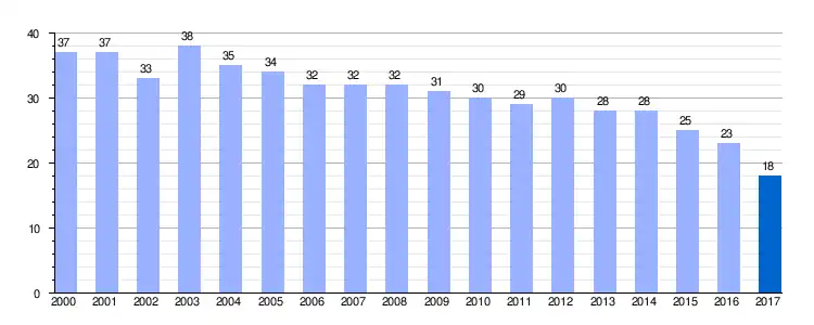 | Gráfica de evolución demográfica de Bascuñuelos entre 2000 y 2017 |