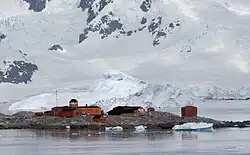 - ↑ La base es visible en Google Earth en fotografía del 10 de mayo de 2011 en las coordenadas (redondeadas al segundo de arco) 64°49′26″S 62°51′26″O / -64.82389, -62.85722.