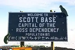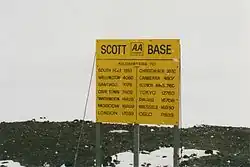 - ↑ NOTA: la base es visible en Google Earth en fotografía del 1/21/2014 en las coordenadas (redondeadas al segundo de arco) 77°50′58″S 166°46′02″E / -77.84944, 166.76722.